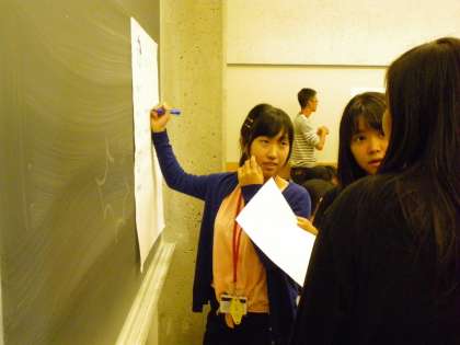 施設見学後,キャンパス内を歩いている学生に一人ずつ声をかける「英語でインタビュー」にも挑戦しました。質問内容は,夢はなにか,バークレーのいいところはどこか等です。生徒たちは始まると同時にちりぢりにわかれ,自分の英語のみで質問を行っていました。中には約1時間の間に20人以上の学生に答えてもらうことができた者もいました。見知らぬ人に声を掛けるのは簡単ではありませんでしたが,バークレーの学生のフレンドリーさのおかげで,無事に終了することができました。この経験を通して,生徒達は英語を話すことに対して更に自信を深めることができたように思います。