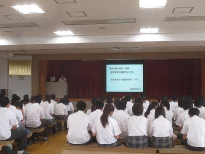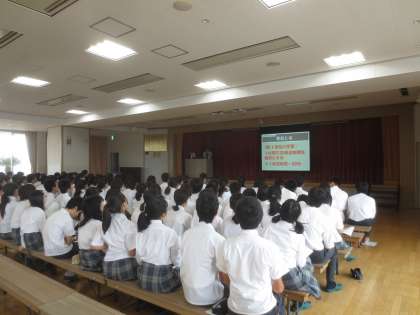 年間3回行います高校オリエンテーションの第2回目です。前回(6月30日)は,教育推進部長の岩佐先生から,高校の概要や高校進学に当たっての心構えについて,事前アンケートの結果も交えながら説明をいたしました。