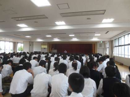 引き続き富永先生から,後期に向けて「受験生宣言」と「受験に向けての流れ」,「進学補習」等についてお話しいただきました。