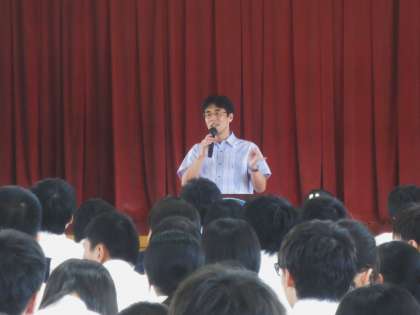 今回のアセンブリでは,前期期末考査,進学補習受講申し込み(開講は10月13日から),受験生宣言等を控え,大きく2つの内容で進めました。