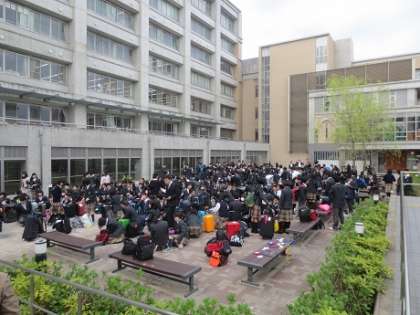 写真 左 中庭での集合の様子