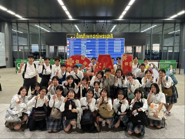 関西国際空港からベトナムのホーチミン空港で飛行機を乗り換え、カンボジアのシェムリアップ空港へ到着しました。飛行機を降りた瞬間から蒸し暑く、 現地の気候を肌で感じて皆驚いていました。