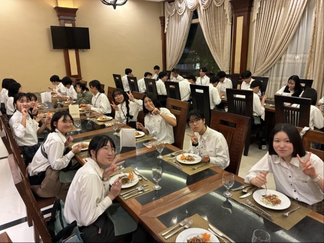 その後ホテルまでバスで移動して、夕食をとりました。クメール料理を堪能し、明日からの行程に向けて英気を養うことができたかと思われます。