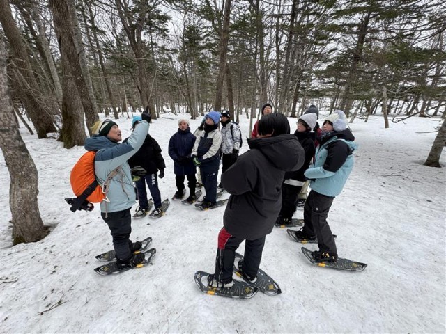 写真:1・2・3枚目:スノーシューツアーの様子