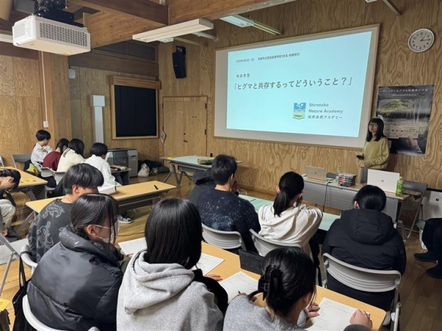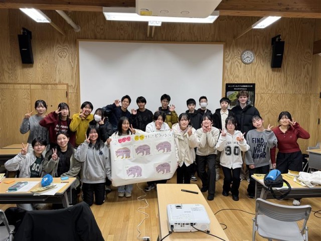 午後からは知床自然アカデミー様による知床の自然に関わるレクチャーとグループワークに取り組みました。知床自然遺産センターを見学した後、ヒグマと共存するってどういうこと?というテーマでグループワークに取り組み、知床の自然に関わる住民、観光客、行政などの管理者などの役割から理想的な状態について考え、内容の発表をしました。生物で学習した内容も含めながら、さまざまな視点で理想的な状態とは何なのかを堂々と発表していて、とても高度で良い発表になっていました。
