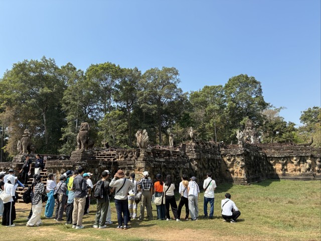 写真中:アンコールトムでの見学の様子