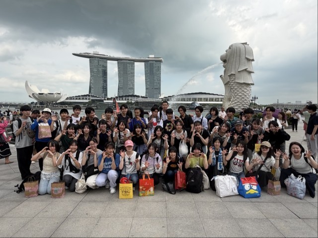 写真上:マーライオン公園での集合写真