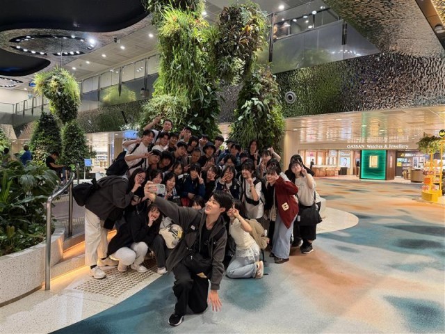 写真上:チャンギ国際空港での集合写真