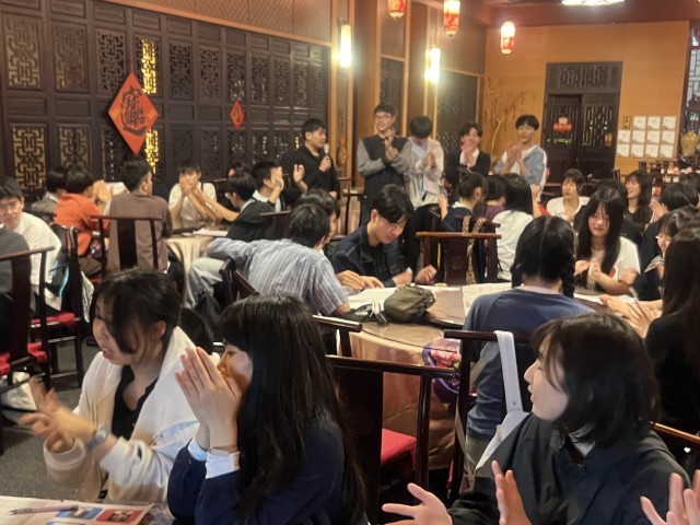 午後は台南市内で班別フィールドワークを行いました。バスの到着が遅れるなどイレギュラーもありましたが、各班ともそれぞれの調査活動を終え、全員無事ホテルへ戻ってきました。帰着した生徒たちの表情には疲れも見られましたが、それ以上に充実感や満足感も感じられる様子でした。夕食は台南市内のレストランで台湾料理をいただきました。食事の後にはレクリエーション係による企画が行われ、これまでの活動を支えてきたフィールドワーク委員への労いの時間も設けられました。