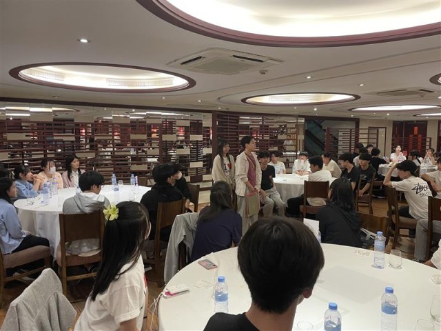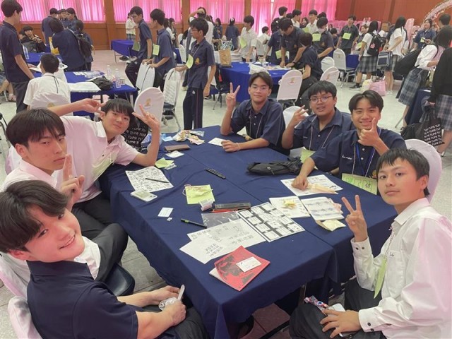 午後にはすごろく、けん玉、書道、折り紙といった日本の文化を交流しました。みんな進行に少し緊張はあったものの現地の高校生を楽しませたいという一心で頑張っていました。