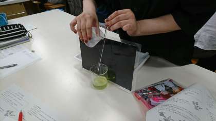 ブロッコリーを使ってDNAの抽出実験を行い、その性質を確かめました。