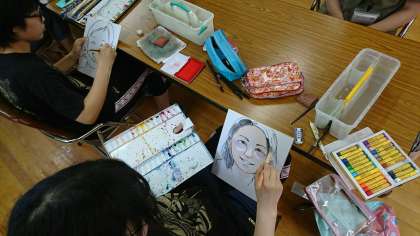 3年「実習A」似顔絵イラスト講座 銅駝学区の皆さんがモデルに