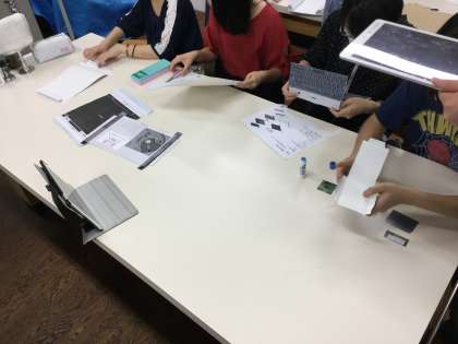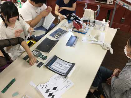 生徒には「このノートパソコンのペーパークラフトを組み立てなさい」としか指示を出さず、生徒が自ら組み立て方を考え、グループで制作するようにしました。また、制作途中ではiPadで写真・動画を撮りながら進めるようにしました。