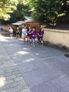場所は、清水寺付近から高台寺、八坂神社。3都市の生徒が、それぞれ京都の文化と、自国の文化の共通点や、違い、発見や、気づきを記録におさめ、コミュニケーションをとりながら歩きました。猛暑の京都ではありましたが、本校の生徒をチームリーダーにして、お互い助け合いながら活動をしました。