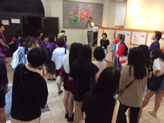 昼食後、再度集合し、マルチホールで記念撮影。そのあと、グループは発表のためのまとめの映像を作成しました。昼食後日本の生徒は「暴風警報発令」のため帰宅。中国、韓国の生徒はホテルで、映像制作の最後の仕上げを行いました。その仕上げには、本校教員がサポートに入りました。