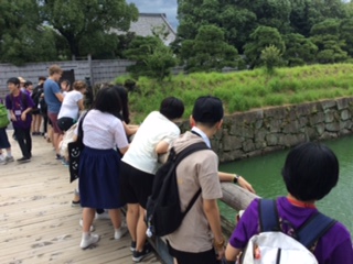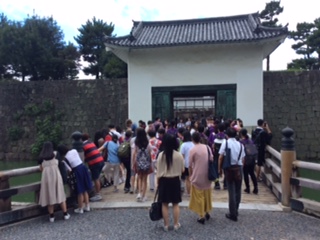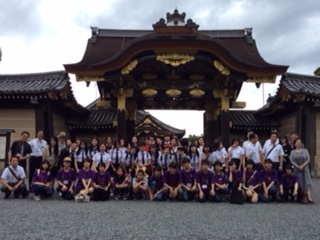 この日は文化視察。ホテル出発後、二条城、和菓子資料館見学、和菓子づくり体験を日中、日韓のグループで行いました。写真は二条城での様子です。