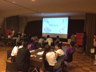 この4日間の生徒の活動の様子を振り返る教員制作の映像を流した後、食事、歓談をしながら各生徒グル−プの発表を映像で行いました。どのグルームも言葉の違いがありながら協力して制作された様子がわかる、素晴らしい作品でした。