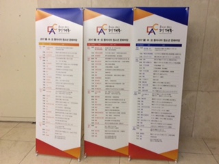 下 ホテルのロビーに、日本語・中国語・韓国語のプログラム案内