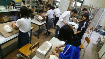 (続き) 1年生の「造形表現」では、当初の8分野から選択した3分野の実習に取り組んでいます。その様子を何回かに分けて紹介します。