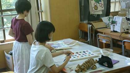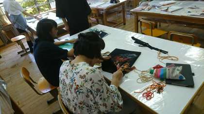 (続き) 1年生の「造形表現」では、当初の8分野から選択した3分野の実習に取り組んでいます。その様子を何回かに分けて紹介します。