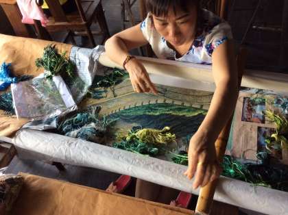 写真上 湘繍歴史博物館見学(職人さんが刺繍作品を製作していた)