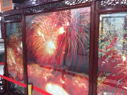 写真中 湘繍歴史博物館見学(展示されている作品は全て刺繍でできている)