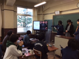 1日、2年生の「コミュニケーション英語2」の授業で、グループワークによる発表学習がありました。