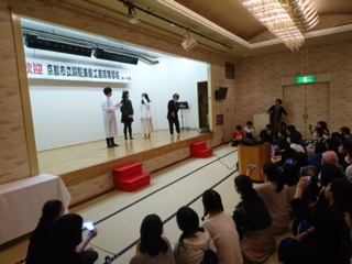 夕食後は学年レクレーションの時間がありました。生徒の実行委員が司会進行し、様々な演目が発表されました。