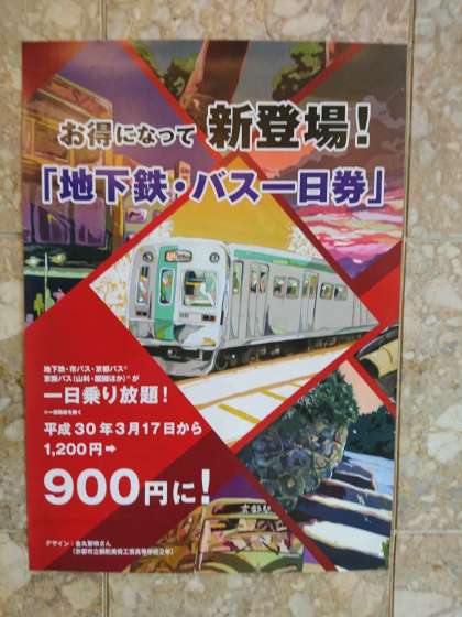 京都市交通局「地下鉄・バス1日券」紹介ポスター 本校2年デザイン専攻生徒の作品