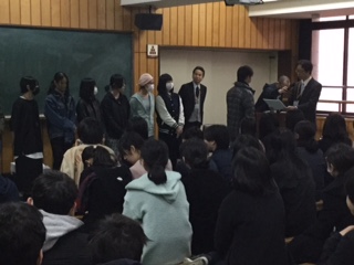 終業式に先立ち、後期、様々な分野で活躍し、作品が評価された生徒の表彰式を行いました。