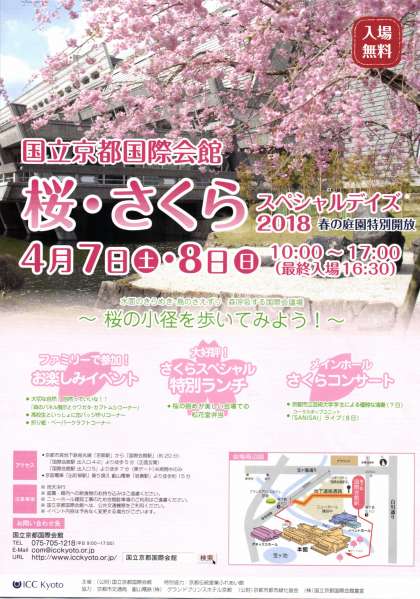 4月7日(土)8日(日)、国立京都国際会館主催の「桜・さくらデイズスペシャル2018」(春の庭園特別開放)のイベントに、本校の生徒ボランティアスタッフが参加をし、震災復興支援募金活動とともに、「高校生と一緒に缶バッジづくり」のワークショップを行います。また、本校生徒作品の展示やVTRの紹介等も行います。