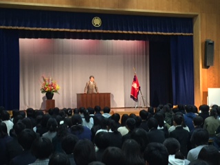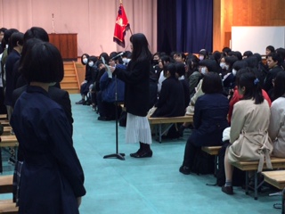 9日午後、離着任式を行いました。校長より転退職者を紹介した後、転退職者のメッセージの披露、そのあと退職教員から直接挨拶がありました。
