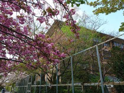 銅駝は、明治にできた京都府画学校の創立がスタートなので今年で139年、この場所で銅駝美術工芸高校としてスタートしてからは39年の歴史を歩んできました。銅駝が開校する前は銅駝中学校、その前は小学校があり、この校舎グラウンド自体が長い歴史を持っています。学校ホームページのブログの記事にも書きましたが、春休み中に80歳を過ぎたご年配の女性が、遠方からわざわざ銅駝を訪ねて来られました。その方は戦前この場所にあった銅駝尋常小学校の卒業生で、大切に残しておられた入学の時の写真を鞄から取り出し、見せてくださいました。それは今もある本館東側の藤棚の前で撮影されたもの。現在の本館は昭和初期の校舎、現在の藤棚も当時のまま大事に残されてきたことがわかりました。思い出の場所で記念写真をお撮りしましたが、感激してお帰りになりました。ちょうど本館の廊下教室の油引きをしてから2,3日経った日のことでした。油引きすることで、ほこりや汚れを防ぎ、板をしなやかにして、割れや痛みを防ぎます。尋常小学校の頃からこの校舎、床や廊下は、万を超える子ども、教職員が踏みしめてきたんだなあと考えると学校という場所の重みを感じます。