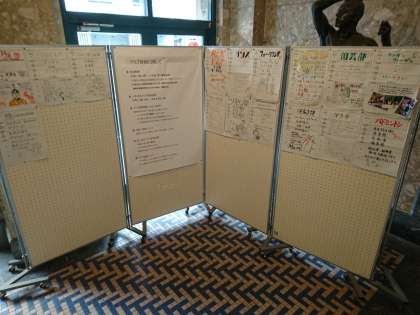 玄関入ったところにはクラブ紹介のチラシと前期生徒会役員選挙公示が張り出されています。