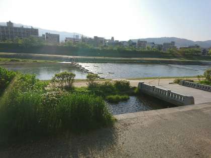 朝は鴨川の水面のきらめきが美しく、水音を聴きながら気持ちが癒されます。