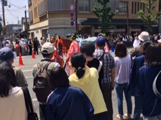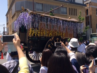 今週は自分たちで「京都らしさとは何か」について考え,グループごとにアイデアを共有する授業を行いました。5月15日は幸運にも葵祭の日。学校から数分の所で行列を間近に見られることもあり,約1時間行列を見ながらイメージを膨らませる校外学習を行い,「その時期,その場所でないと感じられない京都」を体感しました。