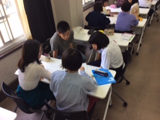 授業を終えた生徒たちは,「京都人でも葵祭のような有名な祭りについて案外知らないので,詳しく紹介するのもいいし,京都人の日常的なものを紹介するものいい。」「京都をテーマにベタ過ぎないもの考えていると結構色々なものや行事に気付けて面白かった。また京都にはたくさんの祭りがあることにも気付いた。昔からの伝統を重んじるからなのかもしれない。」「京都には喫茶店が多く,海外のコーヒー好きの人にも満足できるオシャレな京都らしい喫茶店を集めて紹介するのも面白いのでは。」などと感想を述べていました。
