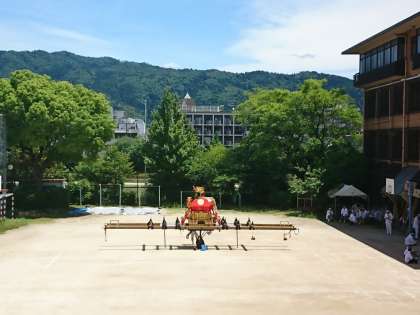 中 本校前を通る神輿行列