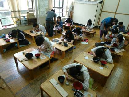 写真 紙紐による器の制作