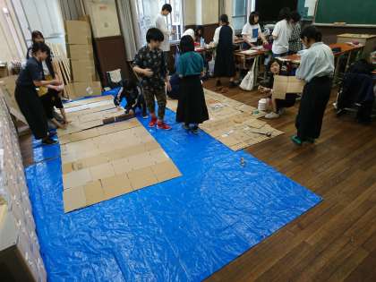 文化祭準備期間 クラス劇の取組 舞台背景、大道具、小道具の制作 その3