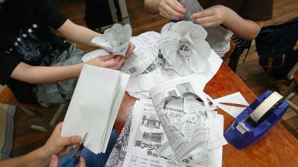 クラス劇で使う、舞台背景や大道具、小道具なども、無料もしくは安価な材料を使いながら、本格的なものに仕上げるために、それぞれ工夫が見られます。
