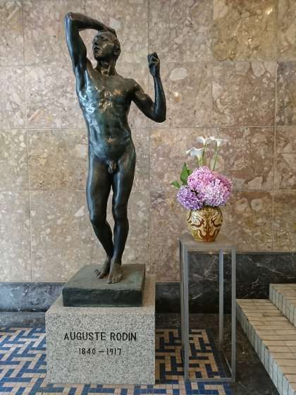 早速花瓶に入れて、正面玄関ロビーのロダン作「青銅時代」の横に飾っています。