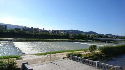 学校の東側の鴨川は水量はまだまだ多いものの、水の色は少し落ち着いてきました。遊歩道には流木や草が上がったままになっています。