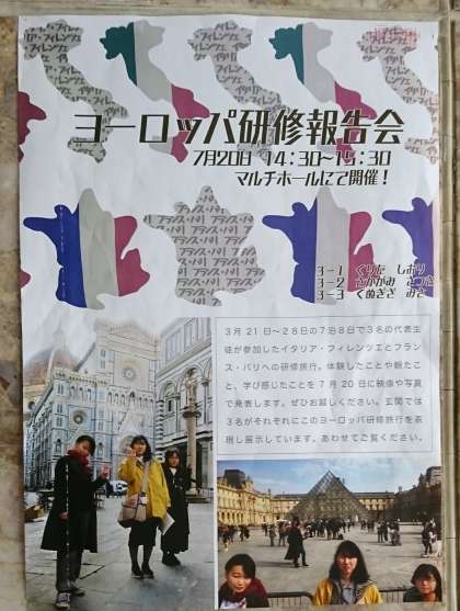 派遣生は、2年生の3月に美術研修に行きましたので、現在3年生に進級していますが、校内の報告会は、毎年夏休みに入る直前に、1・2年生を対象に開催します。