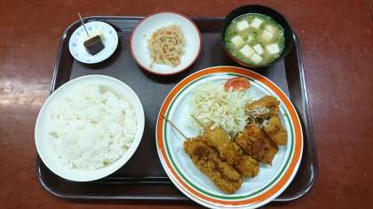 校内食堂 本日の日替わり定食 ミックスフライ盛り合わせ