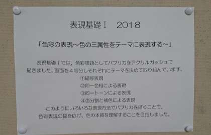 1年生専門科目「表現基礎1」の課題 「色彩の表現〜色の三属性をテーマに表現する」の作品をオープンギャラリーに展示