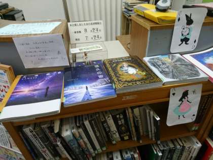 本校では、生徒図書委員が、図書館の特集コーナーを担当し、クラフト制作、ディスプレイしています。