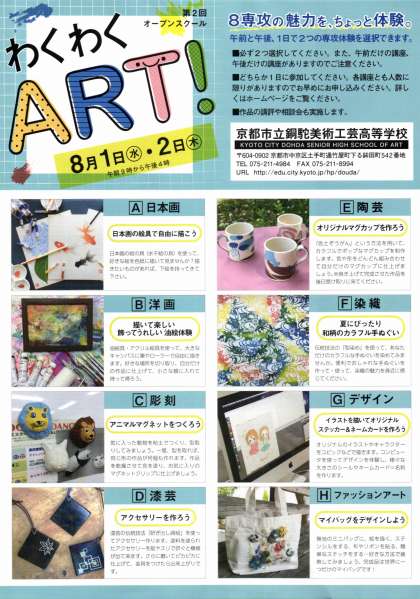 8月1日・2日、2日間「第2回オープンスクール・わくわくART!」を開催しました。中学1年生から3年生まで、500名を超える参加者でした。また、保護者の方も多数ご参加いただきました。ありがとうございました。