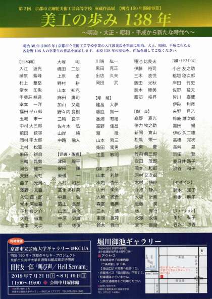 8月7日(火)最終日 京都市明治150年関連事業「京都市立銅駝美術工芸高等学校・第2回所蔵作品展」