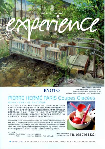 すでに本校ホームページで紹介しましたが(7月9日記事)、本校2年生洋画専攻の佐々木綾音さんが鴨川西岸のみそそぎ川を描いていた時に、すぐ横のホテル ザ・リッツ・カールトン京都の方が声をかけていただき、そのことをきっかけに、ホテルの冊子の表紙に作品を掲載していただきました。